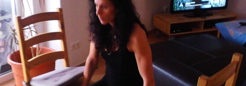 Training mit dem Medizinball auf dem Wackelkissen und Ganzkörpertraining mit zwei Stühlen