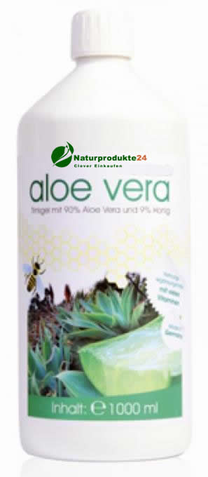 Zusammensetzung: 90 % Aloe Vera Frischpflanzensaft (Barbadensis Miller) aus kontrolliertem Anbau und ca. 9% Honig, Vitamin C
